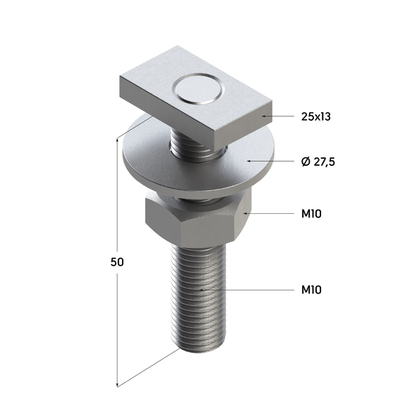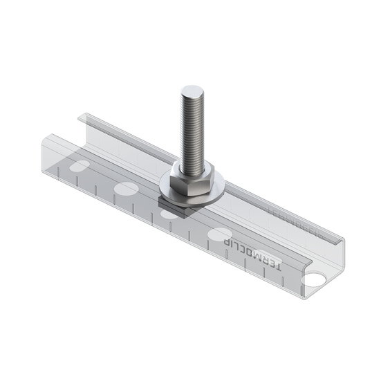 - Применяется в качестве крепежа для раскрепления различных узлов (профили, консоли, хомуты) с применением резьбовых соединителей.