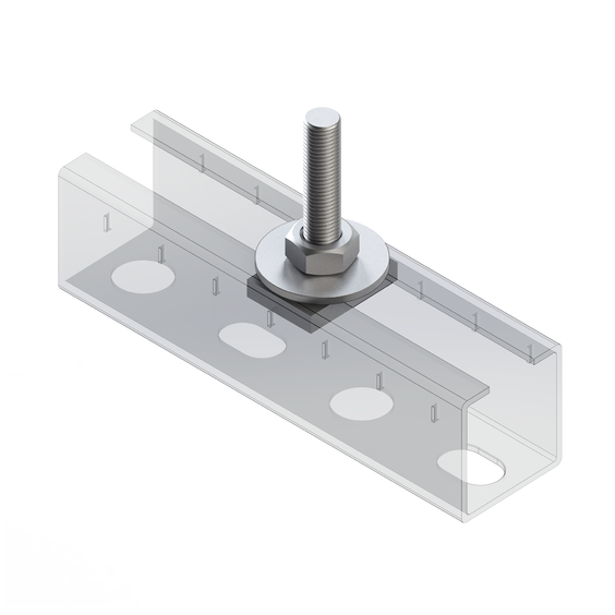- Применяется в качестве крепежа для раскрепления различных узлов (профили, консоли, хомуты) с применением резьбовых соединителей.