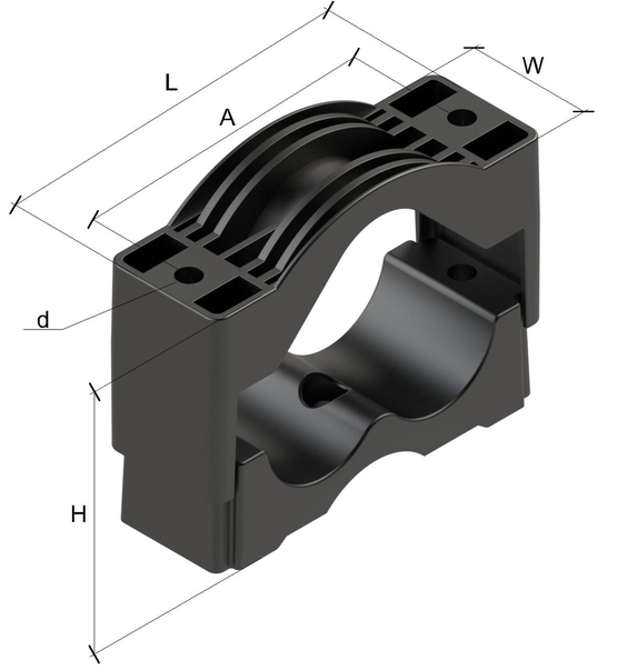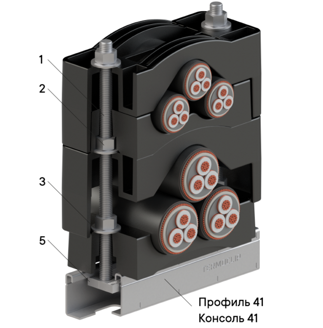 - Типоразмерный ряд крепежа охватывает диапазон диаметров кабелей от 25 мм до 165 мм.