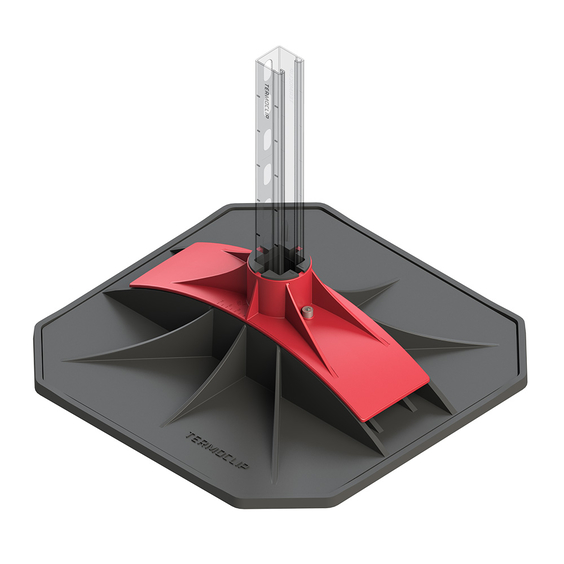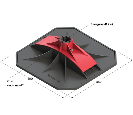Опоры 480, выполненной из микроармированного полимерного композита; Коврика резинового противоскользящего виброизоляционного 480х480; Траверсы поворотной, регулируемой, выполненной из микроармированного полимерного композита; Вкладыш (адаптера) под установку различного типа монтажных профилей; Два фиксирующих болта с гайкой