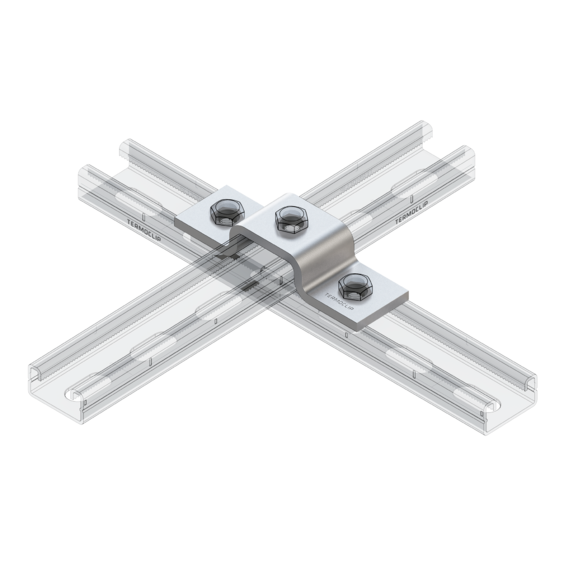 Cоединительный элемент для монтажа рам, стеллажей, каркасов для легких и средних систем. Обеспечивает устойчивое поперечное (крестовое) соединение профилей. Наиболее эффективно использования скобы, как соединителя для создания пространственных силовых, опорных каркасов и решеток. Возможность реализации крепления профиля к бетонному основанию.