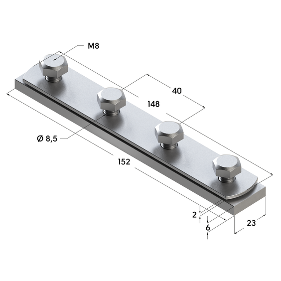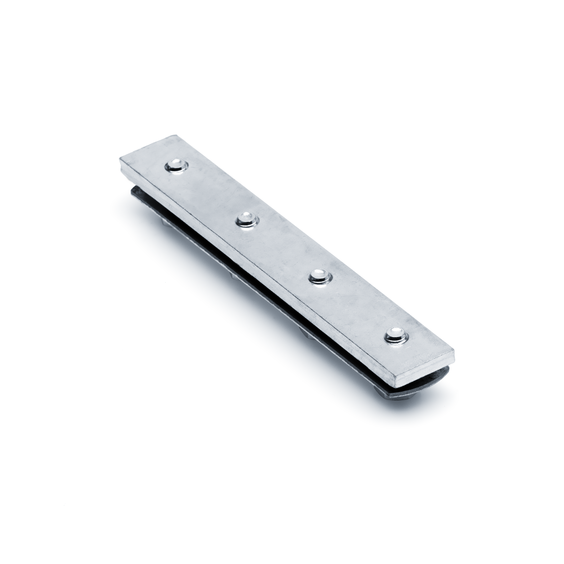 - Соединительный элемент вставляется в соединяемые профиля и затем крепится/фиксируется при помощи четырех крепежных винтов и шайбы (4 отв. 8,5 мм).